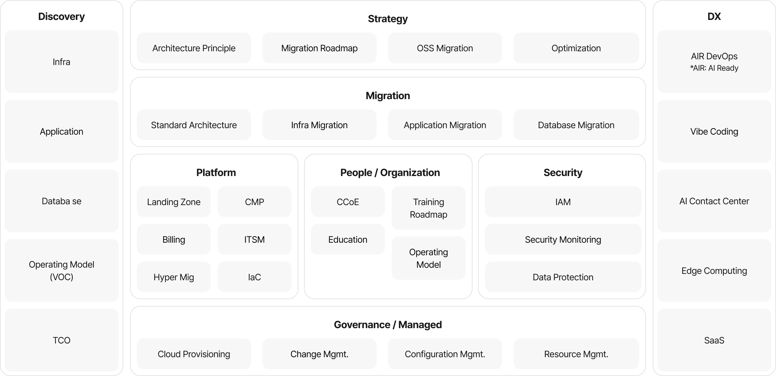 長年蓄積されたMMF(Migration & Modernization Framework)基盤で複雑なシステムを体系的に分析し転換準備から実行までリードタイムを短縮します。